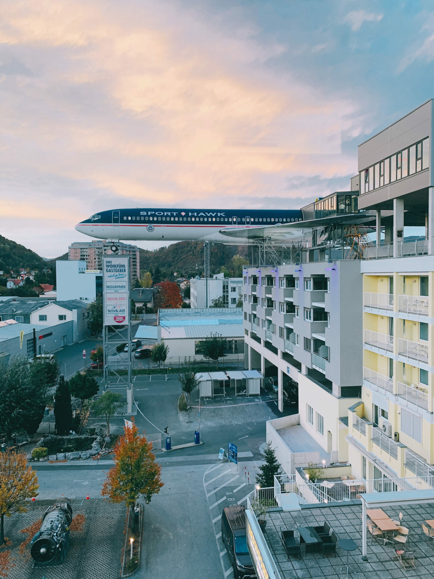 另外,来的这个 spa 的楼顶上有两架真飞机,但分别作为酒吧和餐厅使用