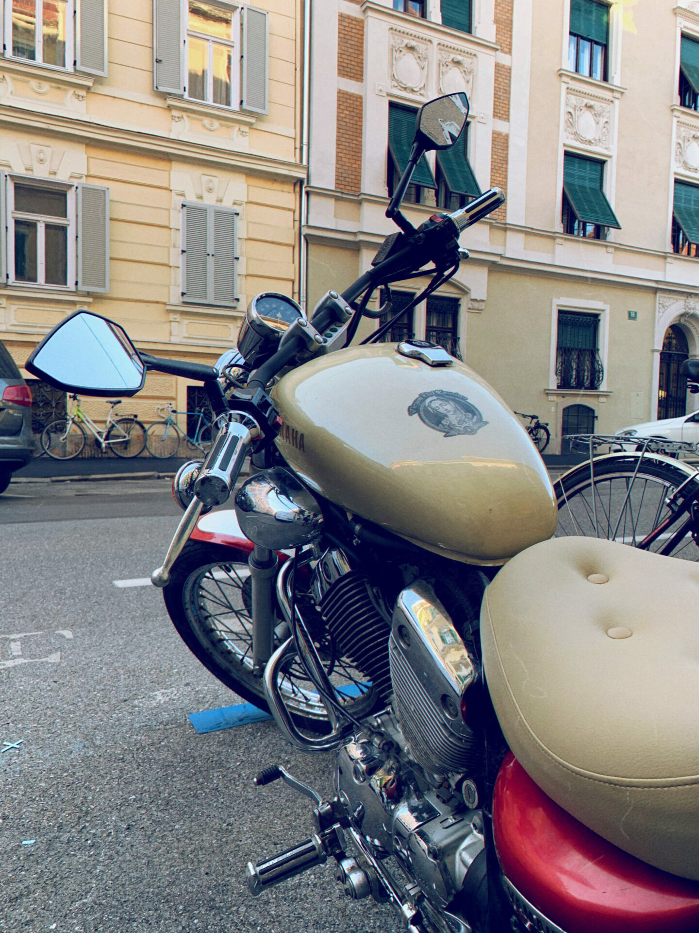 七月份买的头盔,之后经历了年检、多次修油箱、换座椅,短袖短裤都换成了皮夹克,今天才终于坐上了红毛的摩托车。